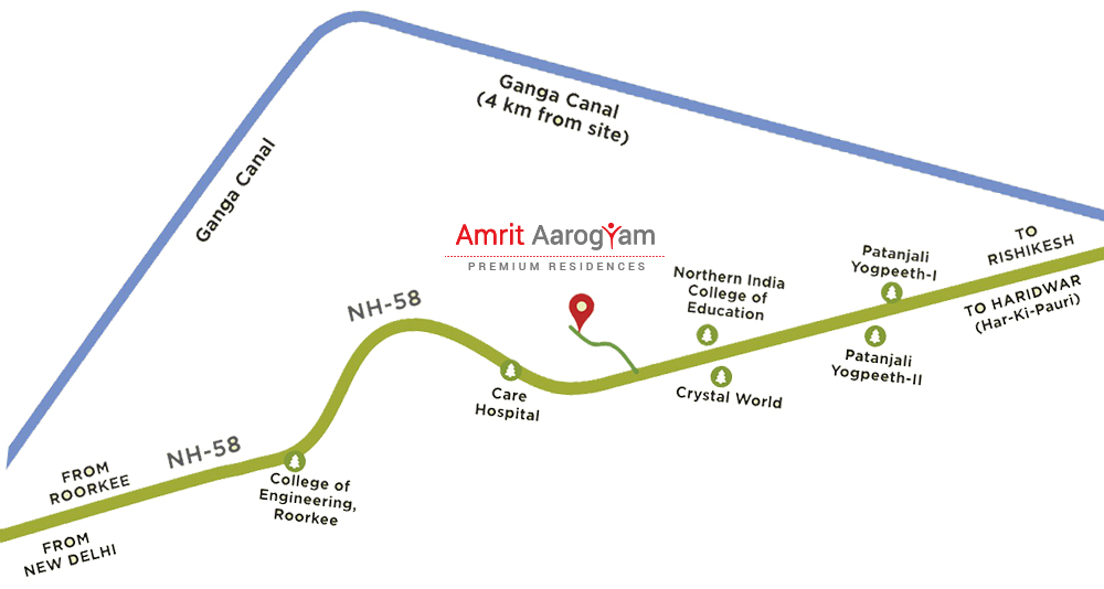Introducing Amrit Aarogyam, an exquisite residential venture offering luxurious 2BHK, 3BHK and 4BHK apartments nestled in the serene environs of Haridwar. Strategically located just half a kilometer away from the renowned Patanjali Yogpeeth, this residential complex promises a harmonious blend of comfort, convenience, and spiritual tranquility. Situated a mere 20 kilometers from the revered Har Ki Pauri and 12 kilometers from the bustling town of Roorkee, Amrit Aarogyam enjoys easy accessibility to key landmarks and urban centers in the region. Its prime location on the 6-lane highway linking Delhi to Dehradun ensures seamless connectivity to major cities and towns, facilitating hassle-free travel for residents. For those traveling by air, the proximity to Jolly Grant Airport in Dehradun, just 50 kilometers away, adds to the convenience factor. Whether you're a frequent flyer or prefer road travel, reaching your destination is swift and effortless from Amrit Aarogyam. In addition to its strategic location, Amrit Aarogyam offers a host of amenities and features designed to enhance the quality of life for its residents. From lush green surroundings and landscaped gardens to modern recreational facilities and state-of-the-art security systems, every aspect of this residential complex is crafted to cater to the discerning needs of contemporary urban dwellers.